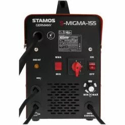 Stamos Poste À Souder MIG/MAG Soudure Mig Mag Mma Fcaw Gaz Inverter 155A 230V – Rouge, Argent