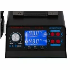 STAMOS Station De Soudage Dessoudage 2 Ecrans Led 200-480°C Buse À Air – Fer À Souder – Rouge