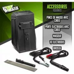 Accessoires: Pince de masse avec câble, porte électrodes avec câble, masque