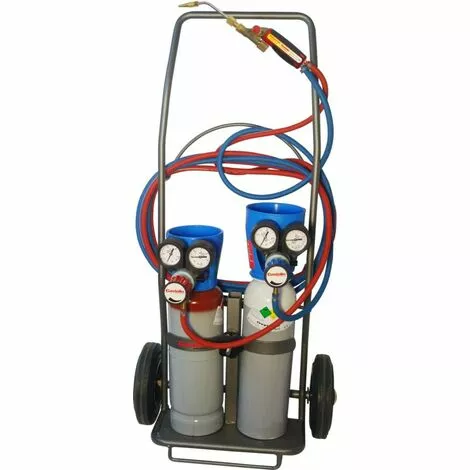 Ce poste de soudage comprend: fChalumeau AutoFlam SI 500 Ă SĂ©curitĂ© IntĂ©grĂ©e. f Ensemble de 5 becs de 100 Ă 400 l/h oxyacĂ©tylĂ©nique. f DĂ©tendeurs industriels TYPHOON oxygène et acĂ©tylène. f Chariot de roulage compact et robuste pour bouteilles B2,5. f Bouteille 0,5 mÂł oxygène Air Liquide – B2,5. f Bouteille 0,42 mÂł acĂ©tylène Air Liquide – B2,5. f Tuyau AD 6,3 x 11 (2,5 mètres). f Tuyau OX 6,3 x 11 (2,5 mètres)