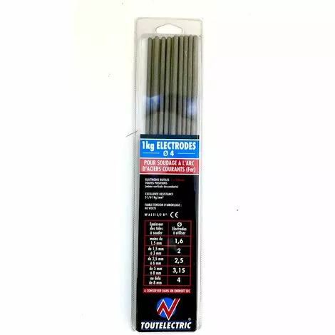 Electrodes pour le soudage tout acier, enrobage de flux rutile pour proteger le bain de soudure diamètre 1,6mm. Puissance conseillée : 120-160A• Électrode rutile universelle, soudage en toutes positions. laitier facile à enlever.• Excellente esthétique du cordon.• Polarité : Connectez votre torche sur la borne négative• AWS A 5.1 : E6013• EN ISO 2560-A : E 420 RC 11