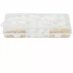 La boîte du produit comprend : 150 pièces x inserts + 150 pièces x ressorts + 10 x pièces en plastique à 2 trous extrémités mâles + 10 x pièces en plastique à 2 trous extrémités femelles + 10 pièces en plastique à 3 trous extrémités mâles + 10 pièces en plastique à 3 trous extrémités femelles + 10 pcs x 4 trous en plastique extrémité mâle + 10 pc x 4 trous en plastique extrémité femelle + 10 pc x 6 trous en plastique extrémité mâle + 10 pc x 6 trous en plastique extrémité femelle
