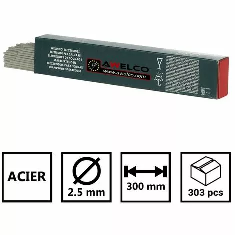 Ces Ă©lectrodes acier rutiles de 2.5 mm de diamètre et 300 mm de long offrent un faible taux d’impuretĂ©, une projection limitĂ©e, une laitance facile Ă enlever et un amorçage facile de la soudure.