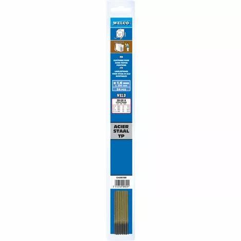 Cet ensemble Welco se compose de 24 Ă©lectrodes de soudage revĂŞtues d’un diamètre de 1,6 mm pour le soudage Ă l’arc de pièces en acier. La longueur des Ă©lectrodes est de 300 mm et vous recevrez 24 pièces incluses.