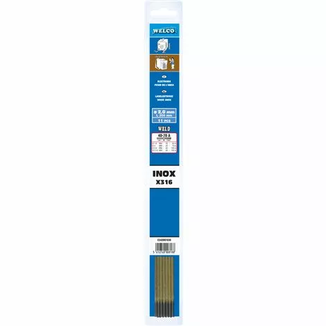 Cet ensemble Welco se compose de 11 Ă©lectrodes de soudage revĂŞtues d’un diamètre de 2 mm pour le soudage Ă l’arc de pièces en acier. La longueur des Ă©lectrodes est de 300 mm et vous recevrez 11 pièces incluses.