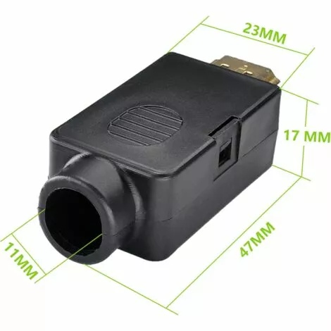 Adaptateur HDMI sans soudure, prend en charge un diamètre maximum de câble de 11.45 mm. Compatible avec HDMI 2.0, (24AWG) 19 1 Core (5P 4C ADB) ; 1.4 et 1.3.