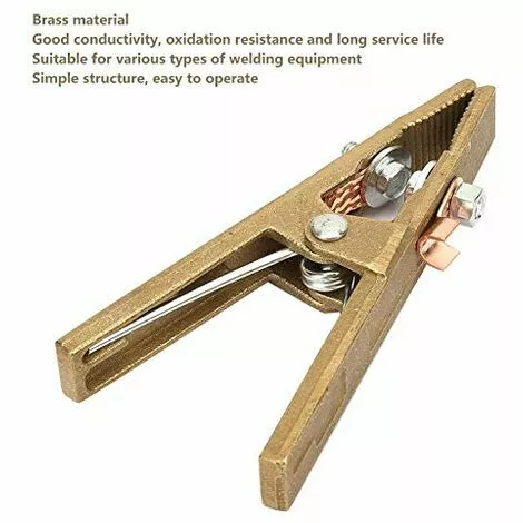 La pince de terre de soudage est fabriquĂ©e en laiton de haute qualitĂ© avec une bonne conductivitĂ©, une rĂ©sistance Ă l’oxydation et une longue durĂ©e de vie.