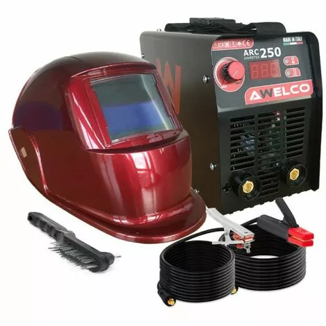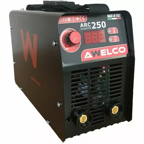 Poste Ă souder INVERTER AWELCO haut de gamme Ă affichage numĂ©rique ARC 250 de la gamme Professionnelle. Conçu pour souder toutes les baguettes Ă©lectrodes de diamètre 1.6 Ă 5 mm. Capable de souder en continu ( DUTY CYCLE). PilotĂ© par microprocesseur, ce poste est Ă©quipĂ© de la protection thermostatique Ventilation HOT FORCE, l’amorçage optimal Technologie ANTI-STICK pour la stabilitĂ© de l’arc – Connectable Ă un groupe Ă©lectrogène. LivrĂ© avec masque de protection, câbles pince de masse porte Ă©lectrode et marteau brosse.
