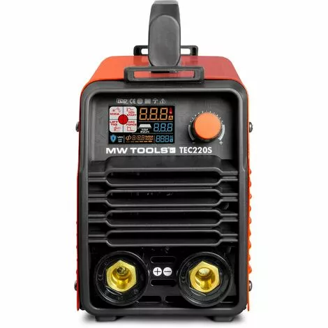 Poste Ă souder inverter pour soudage Ă l’Ă©lectrode 220 A avec Ă©cran LCD et accessoires de soudage.