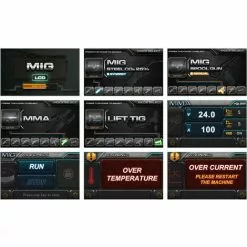 Paramètres rĂ©glables : courant de soudage (A), tension de soudage (V), vitesse d’alimentation du fil (m/min), inductance, dĂ©bit Post gaz (sec), 2T/4T Boutons sĂ©parĂ©s pour l’alimentation manuelle du fil et le contrĂ´le du gaz Bouton Home avec 4 programmes Synergiepour soudage MIG/MAG de l’acier, de l’aluminium et soudage flux.