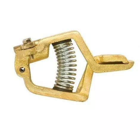 Pince de masse Ă ressort 500 Ampères en laiton  IntensitĂ© maximale 600 A. 500A Ă 60%  Section de câble 70 Ă 95mm²  Poids unitaire indicatif : 740 g Â