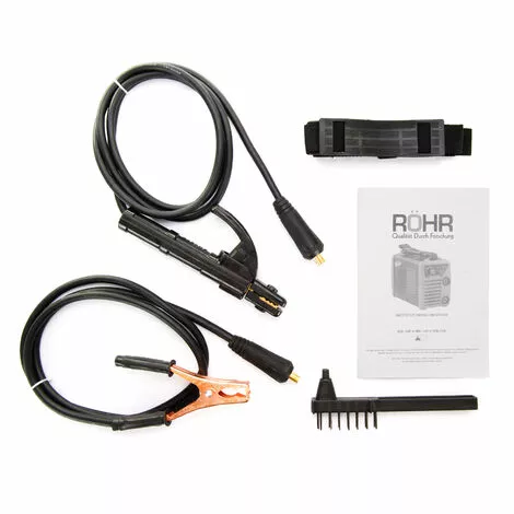Lorsque vous achetez un poste Ă souder Röhr, vous recevez une panoplie complète d’accessoires qui rĂ©pondront Ă tous vos besoins en soudure. Ce modèle est vendu avec une pince porte-Ă©lectrode MMA (câble de 2 mètres), une pince de masse (câble de 1,5 m), une grande bandoulière et une brosse mĂ©tallique. La machine Ă souder dispose Ă©galement d’un câble Ă©lectrique de 1,5 m qui vous permet de la placer Ă l’endroit de votre choix.