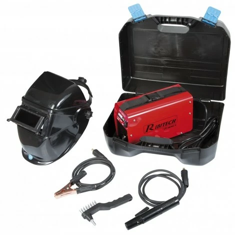 Chaque poste est livré dans une mallette avec 1 pince de masse et 1 pince porte-électrode (± 1,60 m chaque), 1 brosse avec marteau pour laitier, 1 masque de soudure à main, 1 bandouliÚre de transport. Puissance absorbée 4,1 KVA. Tension à vide 90 V. Courant de soudage 5-130 A. Facteur de marche 115 Amp à 55%. Classe de protection IP21 S.