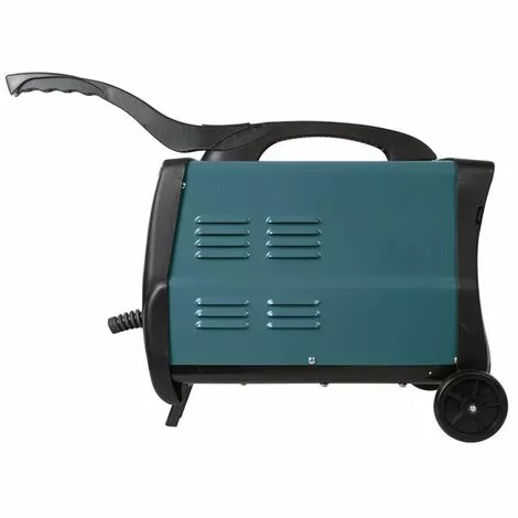 Poste Ă souder 135 A pour opĂ©rations de soudage MIG (sans gaz ) et MAG (sous gaz actif). Configuration sur 6 rĂ©glages de puissance et ajustement fin de la vitesse d’amenĂ©e du fil. Torche contrĂ´lant l’amenĂ©e du fil. Pour souder l’acier doux d’une Ă©paisseur jusqu’Ă 6,5 mm avec sortie de courant constant CC dĂ©livrant des soudures de qualitĂ©. Plage de courant : 30 – 135 A (30, 43, 52, 78, 105, 135). Dispositif de protection anti-surchauffe et refroidissement par ventilateur turbo. Transport facilitĂ© grâce Ă sa poignĂ©e allongĂ©e et ses roulettes. Compartiment pour la bouteille de gaz situĂ© Ă l’arrière avec sangle pour la fixer. Fourni avec bobine de fil mĂ©tallique pour soudage MIG, masque de soudeur, câble de terre, torche de soudage, marteau-brosse de soudeur et autres petits accessoires.