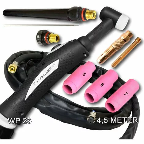 - Paquet de tuyau: 3m “WP-26” et 3 m AG-60 (Les accessoires prĂ©assemblĂ©s de la photo de la torche de soudage font partie de l’ensemble de 8 pièces)