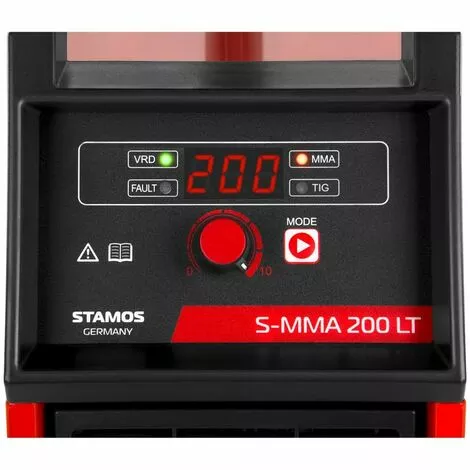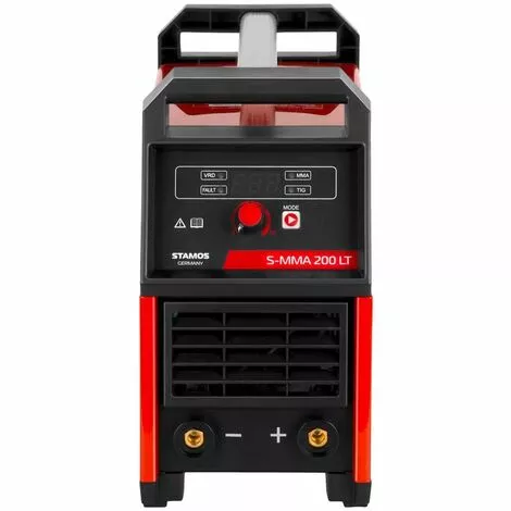 Le poste S-MMA 200 LT de Stamos Germany offre une intensitĂ© rĂ©glable de 10 Ă 200 A. Muni d’un dispositif de sĂ©curitĂ© VRD qui permet le travail dans les milieux humides, robuste, compact et facile Ă transporter, il peut ĂŞtre combinĂ© au poste Ă souder 10020728 pour des soudures TIG avec amorçage lift-arc, une mĂ©thode qui ne pertube pas les appareils Ă©lectroniques. Ă€ 200 A, son cycle de travail est de 60 pour cent, mais il peut ĂŞtre augmentĂ© en rĂ©duisant l’intensitĂ© du courant.