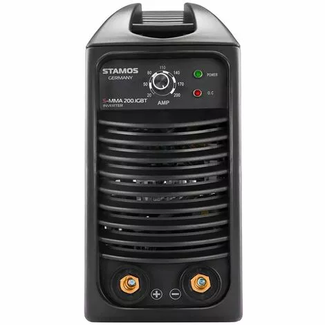Avec le poste Ă souder Ă l’arc S-MMA 200.IGBT de Stamos Germany, vous disposez d’un appareil innovant de haute qualitĂ©, destinĂ© aux professionnels, pour rĂ©aliser vos travaux d’entretien et de rĂ©paration. Ce poste Ă souder a Ă©tĂ© conçu pour souder Ă l’arc Ă©lectrique avec l’Ă©lectrode enrobĂ©e en courant continu.En soudant Ă l’arc Ă©lectrique, aussi appelĂ© soudage MMA, un arc Ă©lectrique crĂ©e un point de fusion entre le matĂ©riau d’ouvrage et une baguette d’Ă©lectrode. L’Ă©lectrode agit autant en tant que conducteur Ă©lectrique, gaz protecteur et comme consommable. Le courant de soudage du modèle S-MMA 200.IGBT est rĂ©glable en continu entre 20 et 200 ampères. Cet appareil s’adapte donc de manière optimale Ă tous les besoins.Grâce Ă la fonction Hot-Start intĂ©grĂ©e, mĂŞme les Ă©lectrodes les plus compliquĂ©es Ă amorcer peuvent ĂŞtre amorcĂ©es sans problème car cette fonction augmente automatiquement la tension lors de l’amorçage de l’arc. La construction compacte et le boitier robuste en acier du poste S-MMA 200.IGBT sont des atouts indispensables pour travailler dans un atelier ou sur un chantier de construction.