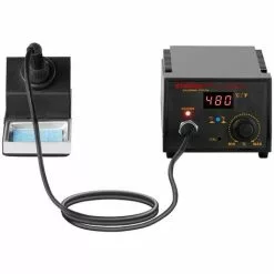 Cette station de soudage numĂ©rique a Ă©tĂ© conçue notamment pour des activitĂ©s industrielles comme les rĂ©parations ou la construction. Elle convient Ă©galement pour le loisir des utilisateurs expĂ©rimentĂ©s en Ă©lectronique. La structure compacte et les poignĂ©es ergonomiques de la station la rendent mobile et surtout Ă©conome en place. Évidemment, toutes les stations de soudage de Stamos Soldering ESD sont fiables et sĂ»res! L’alimentation Ă©lectrique de l’appareil est connectĂ©e Ă la base de la station dans laquelle vous pouvez trouver tous types de fonctions et raccords dont vous avez besoin. De plus, elle dispose d’un grand Ă©cran LED de qualitĂ© indiquant avec prĂ©cision la tempĂ©rature de votre fer Ă souder. De plus, la station de soudage S-LS-12 est Ă©quipĂ©e d’un support latĂ©ral pour la buse Ă air chaud et d’un support Ă fer Ă souder muni d’une Ă©ponge sèche. La rĂ©sistance intĂ©grĂ©e du fer Ă braser vous garantit une transmission de chaleur des plus efficaces.
