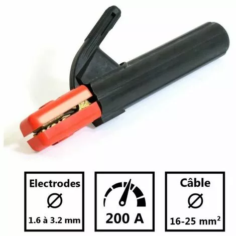 Cette pince porte Ă©lectrode est conçue pour le soudage Ă l’arc jusqu’Ă 200A. Elle peut tenir des Ă©lectrodes de 1.6 Ă 3.2mm de diamètre. ComposĂ©e de mâchoires et d’un corps en laiton moulĂ©, et d’un revĂŞtement anti choc. Cette pince possède 7 positions de tenue et d’un serrage par levier.